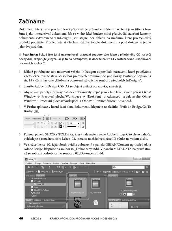 Kniha obsahuje prvky jak českého, tak anglického uživatelského rozhraní InDesignu CS6.
