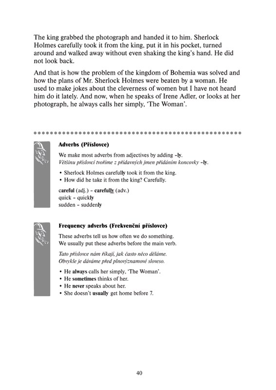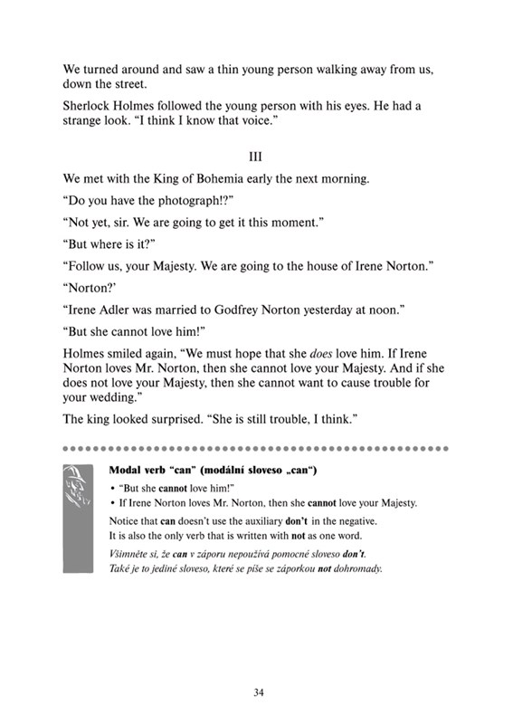 Zjednodušená verze světové povídky Sherlock Holmes – Skandál v Čechách od anglického spisovatele Arthura Conana Doyla je určena pro mírně pokročilé studenty anglického jazyka.