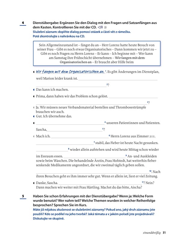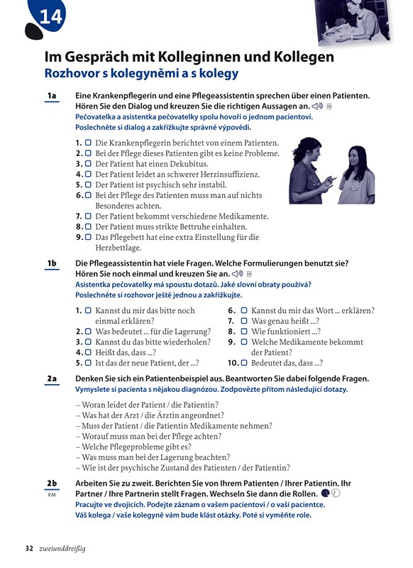 Obsahuje 22 modelových lekcí pro každodenní situace na pracovišti týkající se péče a pečovatelských služeb.