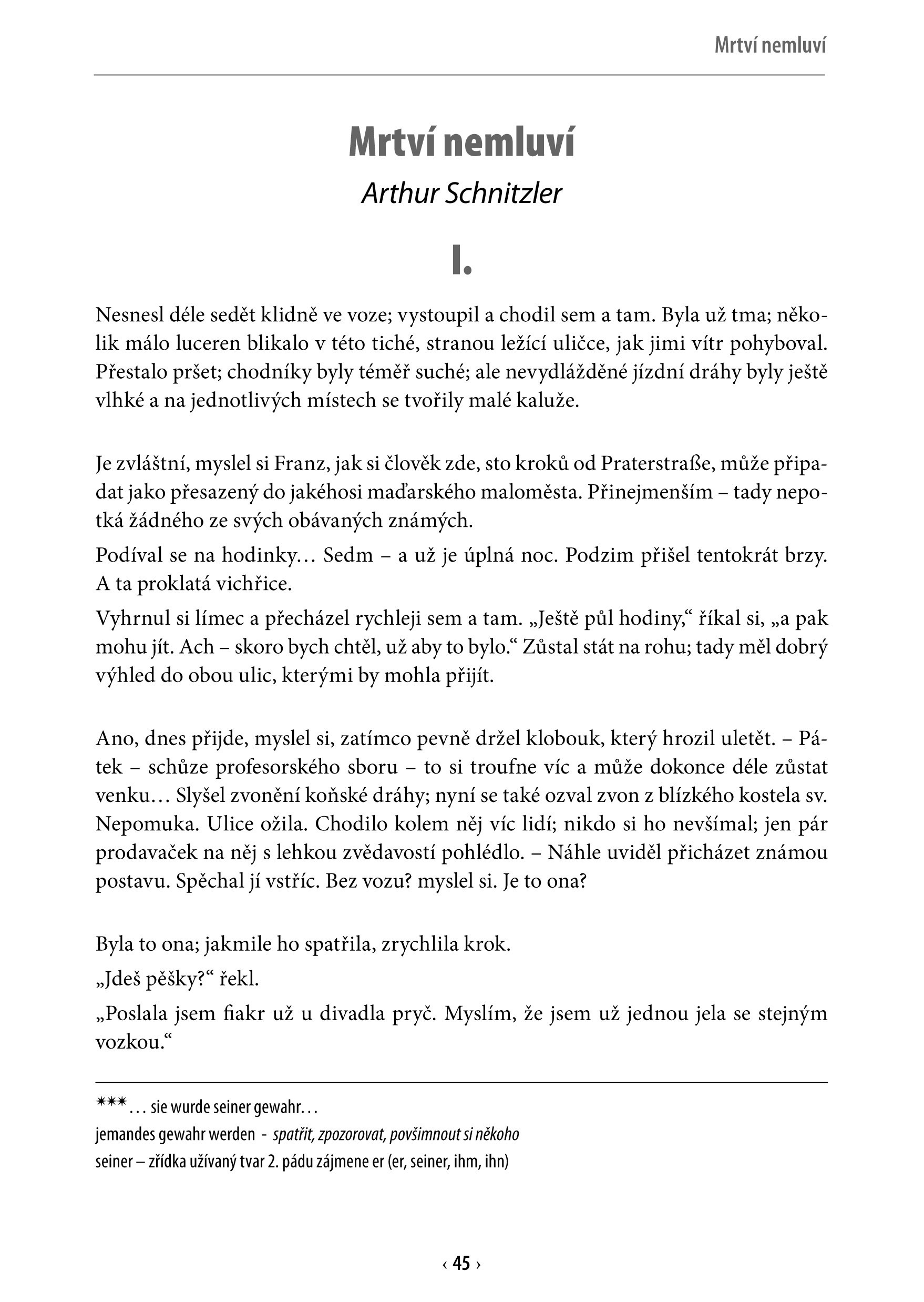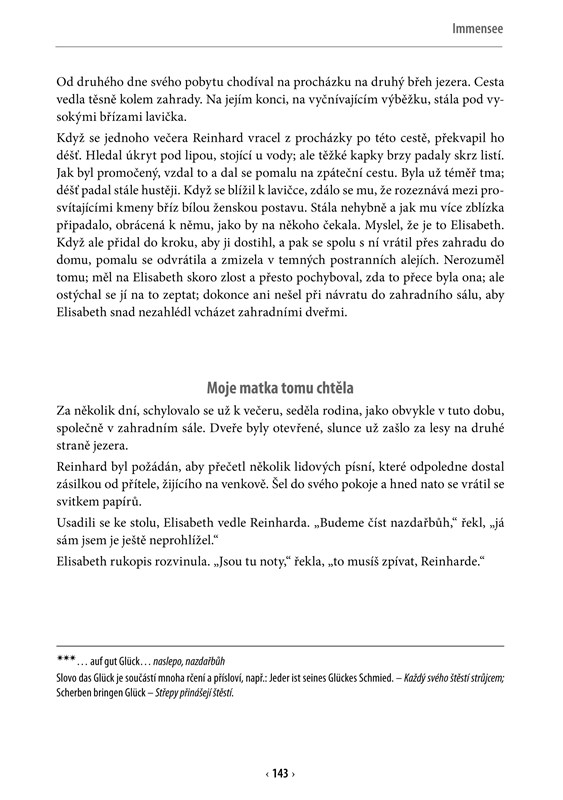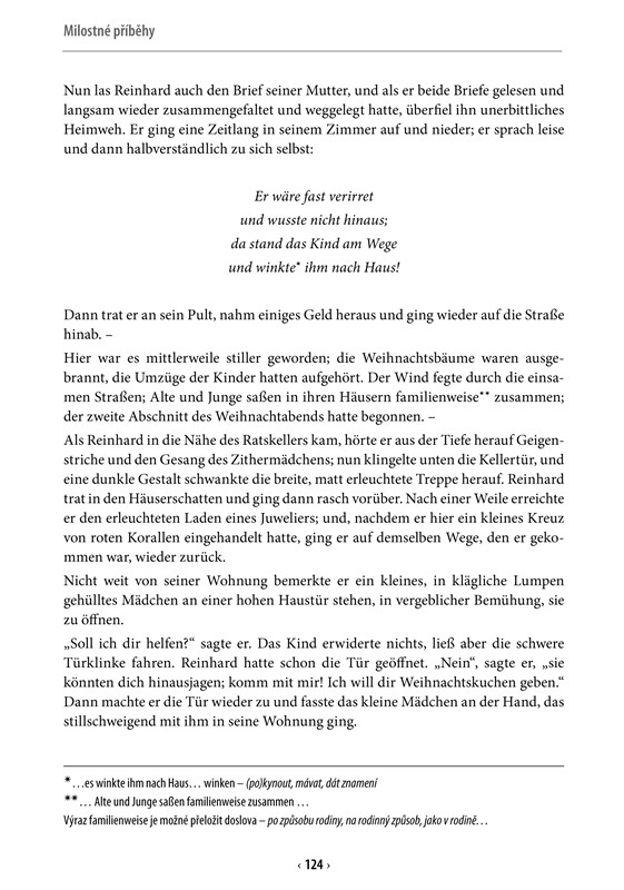Čtyři milostné příběhy Arthura Schnitzlera a Theodora Storma pro dvojjazyčné vydání upravila Jana Navrátilová. Klasici německy psané literatury vám umožňují se na chvíli zastavit, zamyslet se a snad se i zasnít nad dávnými, ale stále živými příběhy o různých podobách lásky. Zároveň vás okouzlí krásou svého vytříbeného jazyka.