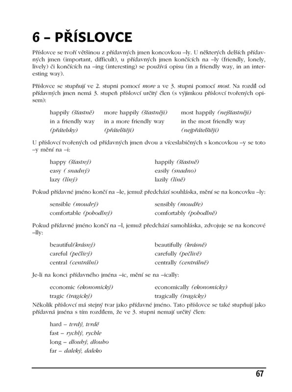 Výkladová část učebnice se zabývá jednotlivými větnými členy, anglickými časy a typy vedlejších vět a souvětí, přičemž přibližuje studentům některé významné odlišnosti od české mluvnice. Jednoduché příklady ve větách poskytují snazší pochopení gramatiky.