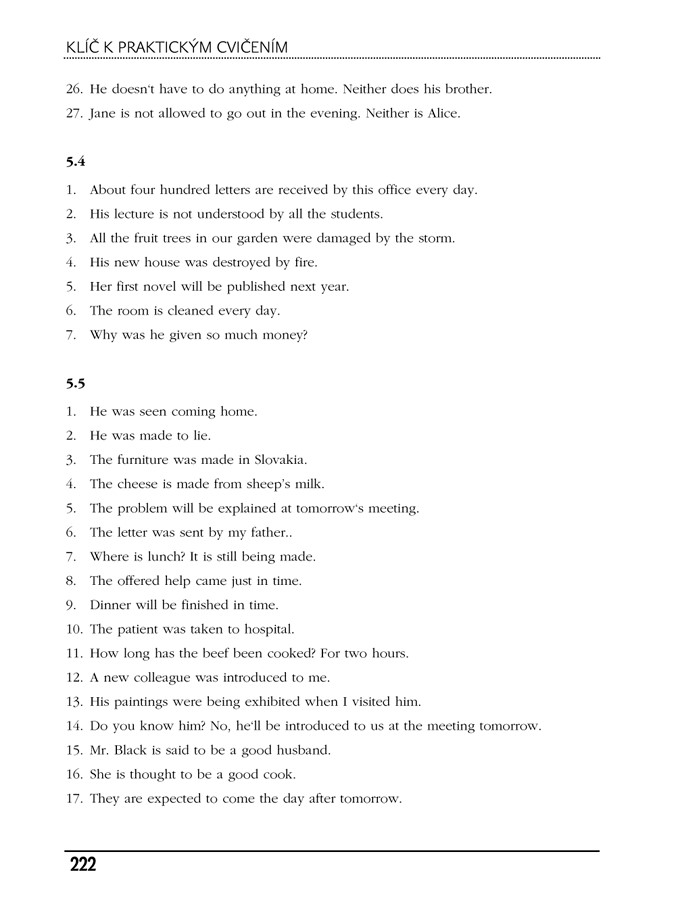 Druhá část učebnice obsahuje praktická cvičení a překlady, které jsou zaměřeny na procvičení látky vysvětlené v jednotlivých kapitolách. Cvičení jsou sestavena pro žáky, kteří již angličtinu nějaký čas studují, nikoli pro naprosté začátečníky. Pomocí těchto cvičení si studenti mohou ujasnit některé jevy nebo rozšířit své znalosti. Nezbytný je klíč ke všem cvičením, který tuto knihu uzavírá.