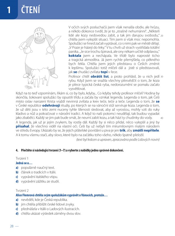 5. část ČTENÍ (čtecí text s aktivitami a úlohami na nácvik čtení s porozuměním)