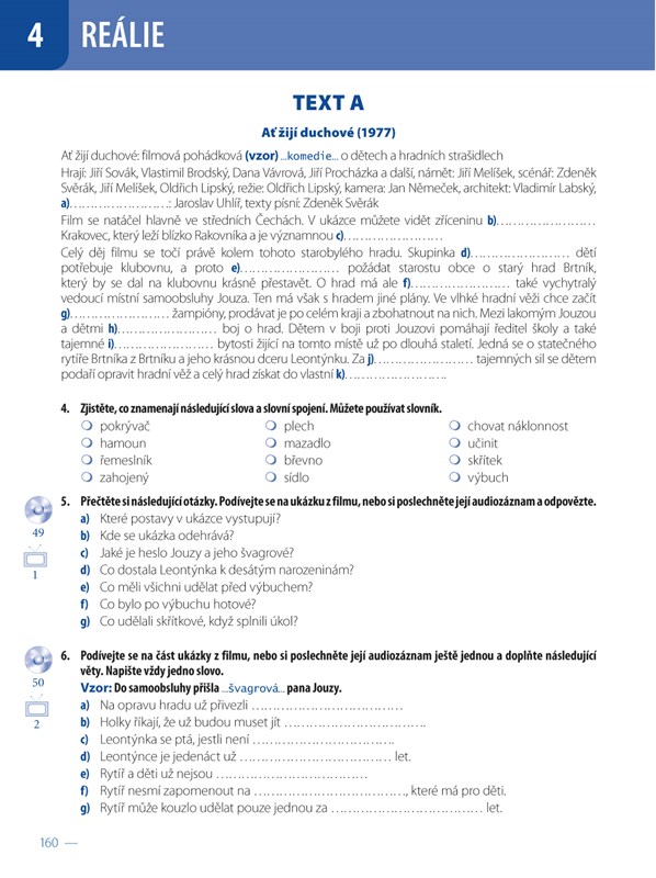 10. část REÁLIE (tato část má stejnou koncepci jako část ČTENÍ, obsahuje zajímavosti týkající se české kultury, jsou zde mimo jiné ukázky ze tří českých filmů nebo se k procvičování a fixování lexika úrovně B2 využívají písničky...)