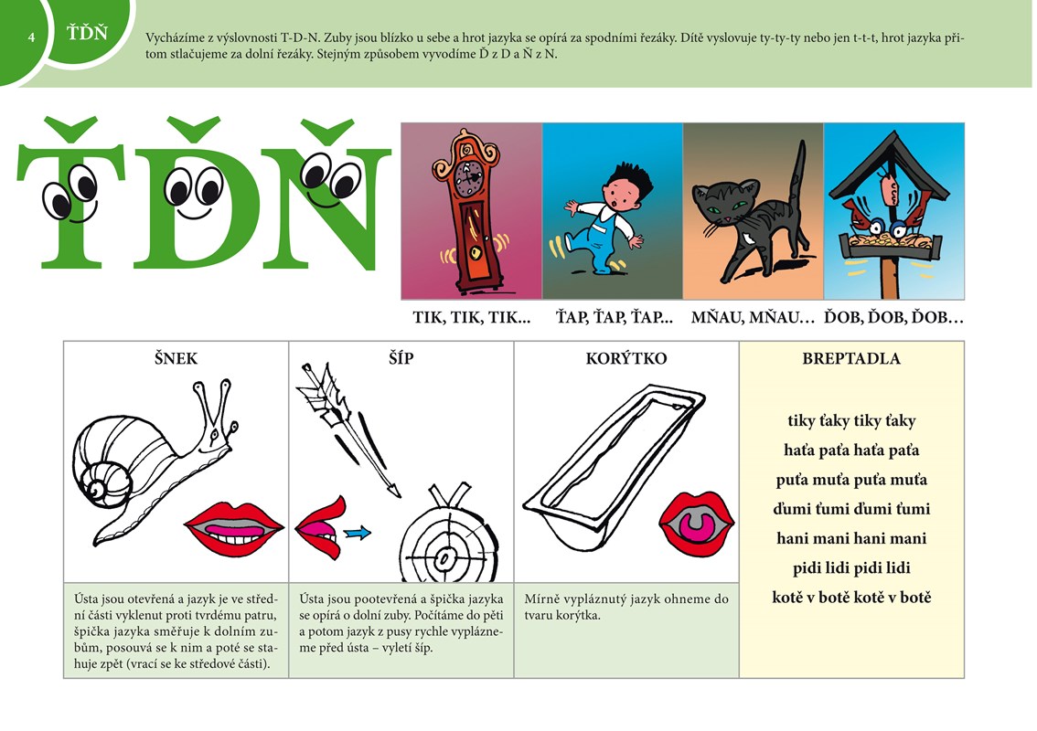 Knížka je určena dětem i rodičům. Poslouží k procvičení výslovnosti hlásek L, C, S, Z, Č, Š, Ž, R, Ř, CSZ, ČŠŽ, ŤĎŇ, které v řadě případů činí docela vážné problémy. Aktivity a cvičení jsou vymyšleny tak, aby rodiče rovněž přiložili ruku k dílu, zapojili se do her a se svými dětmi procvičovali problematická slovní spojení.