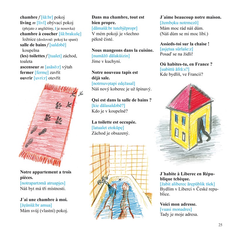 Kniha poskytuje základní orientaci ve francouzském jazyce. Témata jsou řazena dle každodenní potřeby; slova, výrazy a věty jsou doprovázeny fonetickými symboly nezbytnými pro osvojení správné výslovnosti. Stručná vysvětlení, gramatická a obecně kulturní, jsou jasná a přesná, doplňují je četné příklady a cvičení s nabídkou správného řešení úkolů.