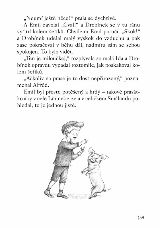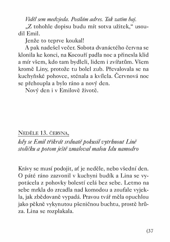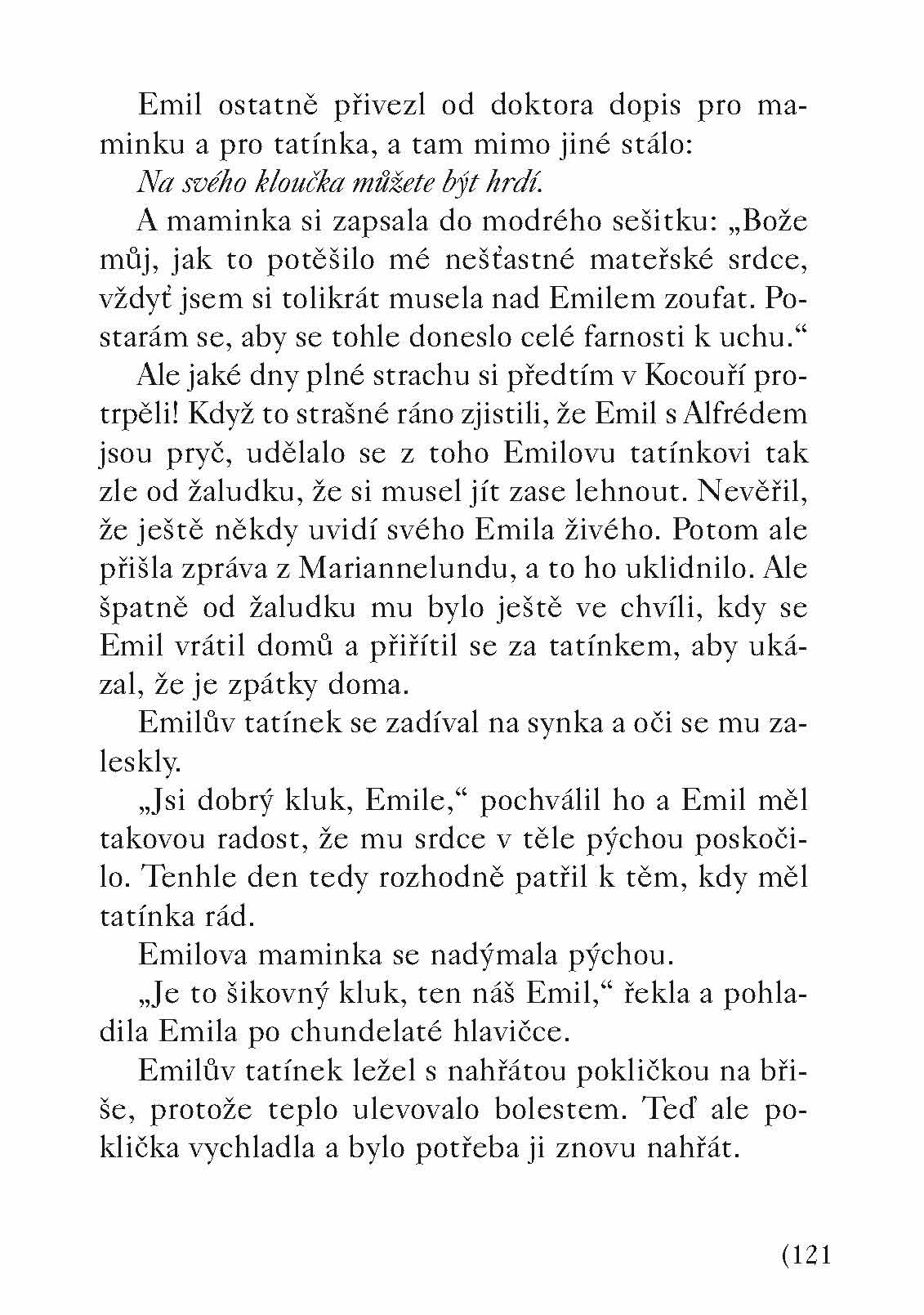 Ve švédské vesničce Lönneberze zná rošťáka Emila každý. Ano, to je ten roztomilý kluk ze statku Kocouří, který vypadá jako andílek a provádí ty neuvěřitelné kousky. Možná že ho znáte i vy z knížky Emilovy skopičiny. A už jsou tu další, a pěkně vykutálené! Však Emil zase stráví nějaký ten čas v truhlárně, kam ho tatínek za trest zavírá, aby přemýšlel o svých prohřešcích. Ovšem poslední Emilův kousek je natolik parádní, že mu snad dokonce bude odpuštěno…