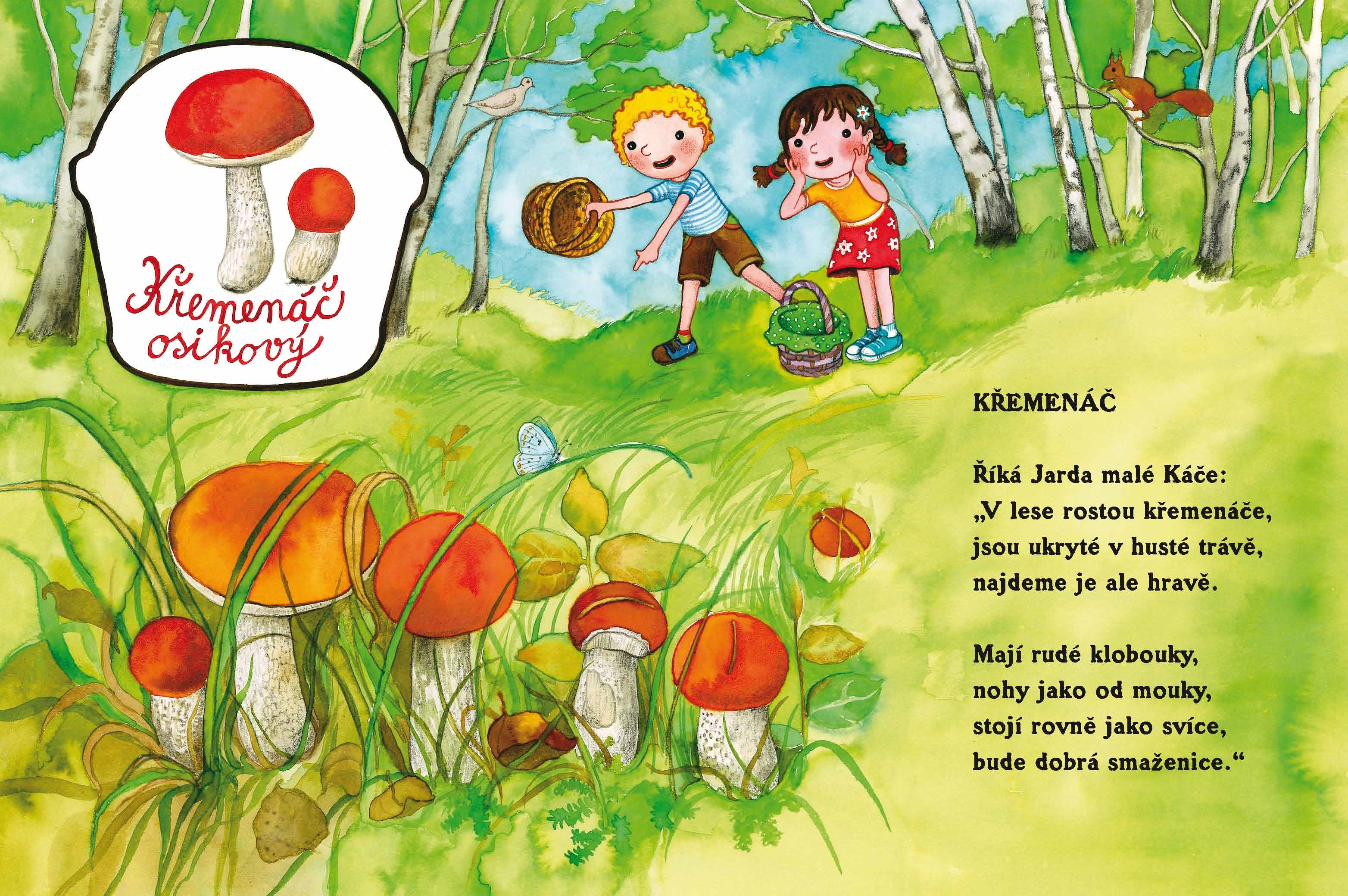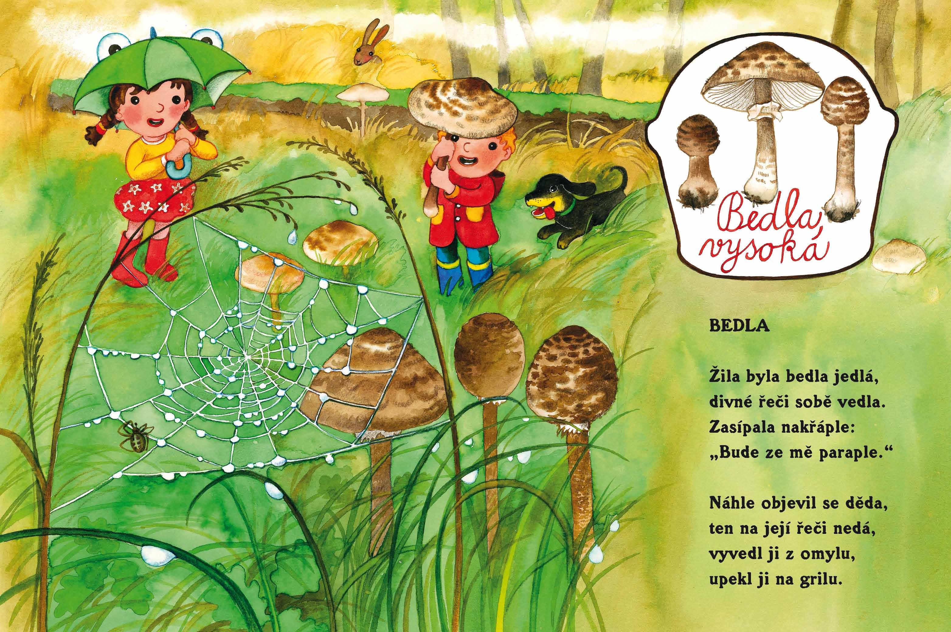 Vzhůru do lesa s veselými verši a obrázky! V poznávacím leporelu se děti seznámí s vybranými druhy hub, jedlými i nejedlými, jako jsou např. májovka, liška, holubinka, hřib modrák, křemenáč, bedla, pýchavka, muchomůrka červená či klouzek. Pojďte na houby bez obav!