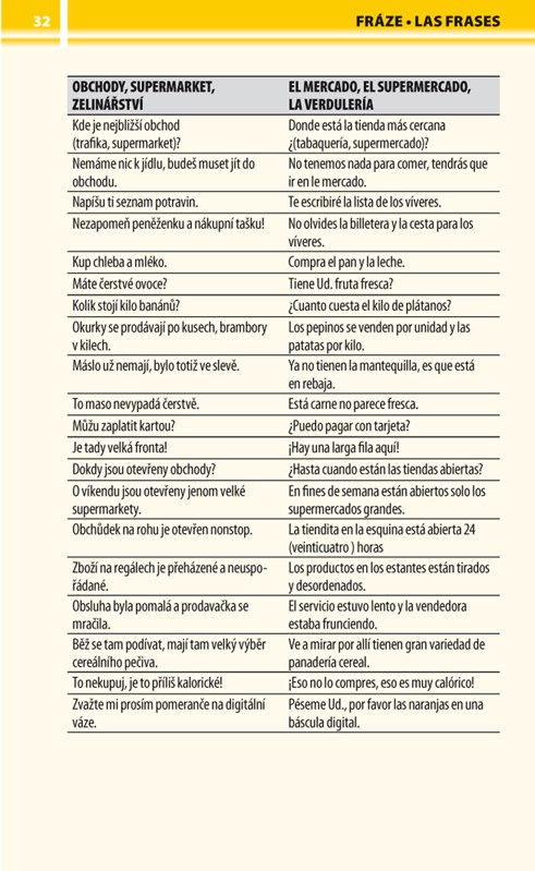 Každý tematický celek je doplněn typickými frázemi. Na konci knihy se nachází souhrnný slovníček.