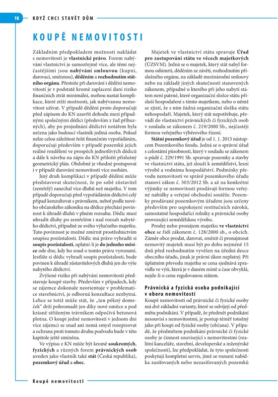 Tato kniha obsahuje vše podstatné, co by měl vědět občan, který se rozhodne stavět. Jde o nové, přepracované a aktualizované vydání, které zohledňuje rozsáhlou novelu stavebního zákona platného od 1.1.2013. Potenciální stavebník zde nalezne veškeré informace týkající se problematiky výstavby – od záměru a přípravy projektu, přes přípravu stavby a proces výstavby až po kolaudaci. Cenné jsou rovněž informace o používaných materiálech a technologiích.