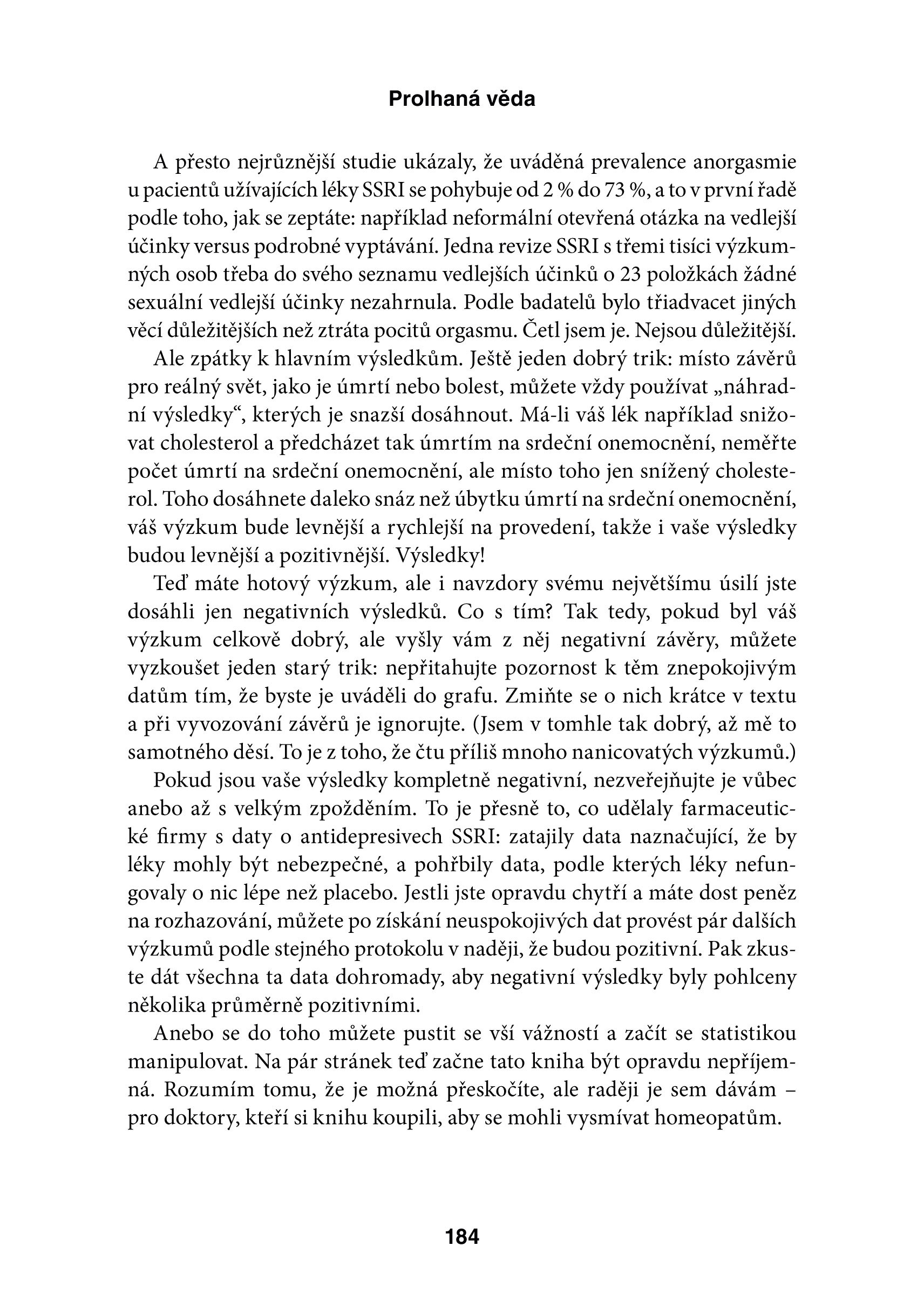 „Existují dva přesvědčivé důvody, proč si přečíst tuto knihu. Prvním je, že si vychutnáte její systematické demontování nesmyslů předkládaných nutričními odborníky, homeopaty, kosmetickými společnostmi a farmaceutickým průmyslem… A druhým je fascinující diskuse o tom, proč se necháváme tak snadno napálit. Přidejte ještě zábavnost knihy a vyjde vám jedna ze zásadních knih tohoto roku.