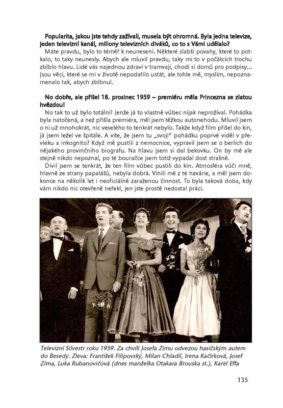 Deset pamětníků televizní historie poskytlo speciálně pro tuto knihu svá svědectví a připojili vlastnoruční podpisy. Jak se „třemi chlapy v chalupě“ – Lubomírem Lipským, Janem Skopečkem a Ladislavem Trojanem – cloumala nevídaná popularita, dokonce nabídky k sňatkům? Jak prožívala „Vlaštovka“ Olga Čuříková v televizi srpen 1968? A jak se dnes daří první programové televizní hlasatelce Jarmile Šusterové? S jakými herci si nejvíce užil kameraman Vladimír Opletal? Jak se z režiséra Františka Poláka stal Louis Armstrong? Co v dnešním televizním vysílání chybí Pavlíně Filipovské a jak její tatínek František Filipovský vzpomínal na první den televizního vysílání v Československu? Kdy se ze swingového zpěváka Josefa Zímy stal král české lidovky? A jak se Jana Štěpánková cítila v Takové normální rodince a jak jako lékařka v Nemocnici na kraji města?
