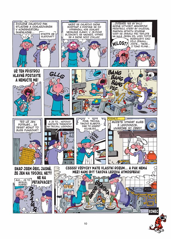 Sedmé album Leonardových vynálezů je přímo legendární. Autorská dvojice Turk a de Groot jím totiž definitivně potvrdila, že má stále nové nápady a že koncept ztřeštěného vynálezce a jeho oddaného sluhy patří k tomu nejlepšímu z evropského humoristického komiksu. Jen v samotné Francii se tohoto alba prodalo přes 100 000 výtisků, a to za jediný rok. Navíc autoři v tomto sešitě dovedli stále se opakující příběh spícího sluhy a vášnivě ješitného vynálezce k dokonalosti ve více než tuctu nečekaných a originálních obměn. Nenapodobitelnou kulisou komiksu se staly drobné gagy kočky a myšky, které doprovázejí hlavní děj, stejně jako měnící se výrazy lebky, která z komody sleduje veškeré dění v Leonardově domácnosti.