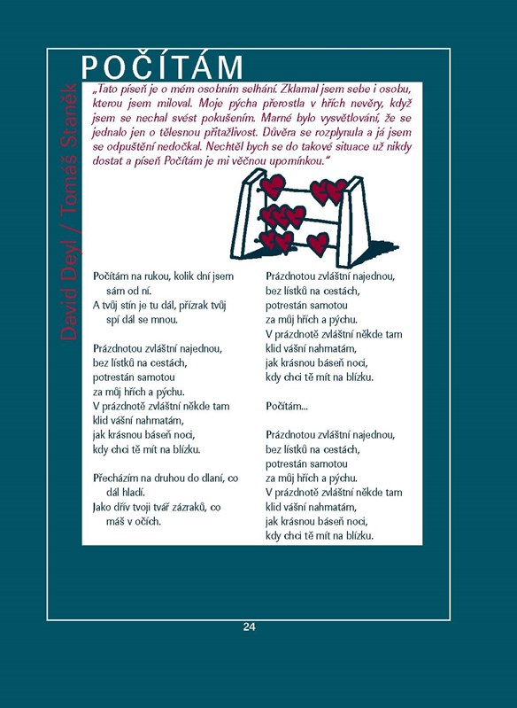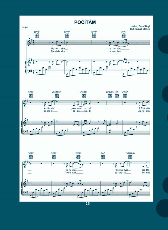 Všechny písničky si teď budete moci zazpívat, zahrát na klavír i na kytaru. Navíc budete mít možnost trochu nahlédnout do zákulisí Davidovy tvorby; v několika krátkých textech píše o inspiraci a okolnostech vzniku písní, jež ho v průběhu života a kariéry zasáhly. Ve fotografické příloze pak najdete spoustu fotek z vystoupení, nahrávacího studia, předchozích ročníků Avon pochodu, ale také dětství, kde je vidět, že David měl hudební kariéru vepsanou ve hvězdách a navíc, že byl roztomilým blonďákem od malička :).