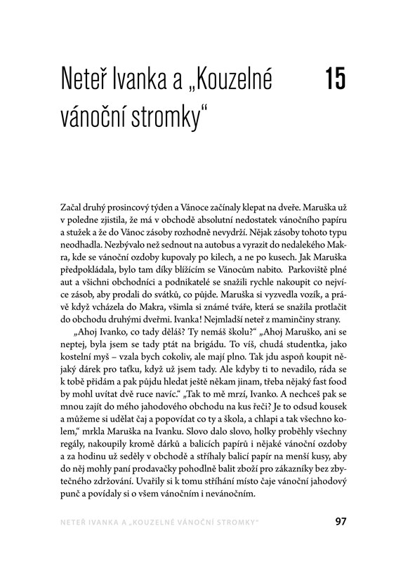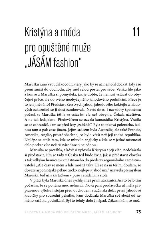 Věřili byste tomu, že každý může podnikat a přitom může být svobodný a šťastný? Tato knížka je plná takových příběhů. Obyčejní lidé, obyčejné osudy a neobyčejné nápady, jak rozjet svoje malé podnikání a jít zázrakům naproti. Knížka je volným pokračováním prvního dílu První kroky v podnikání: Jak si Maruška otevřela obchod s jahodami a dozvíte se v ní: