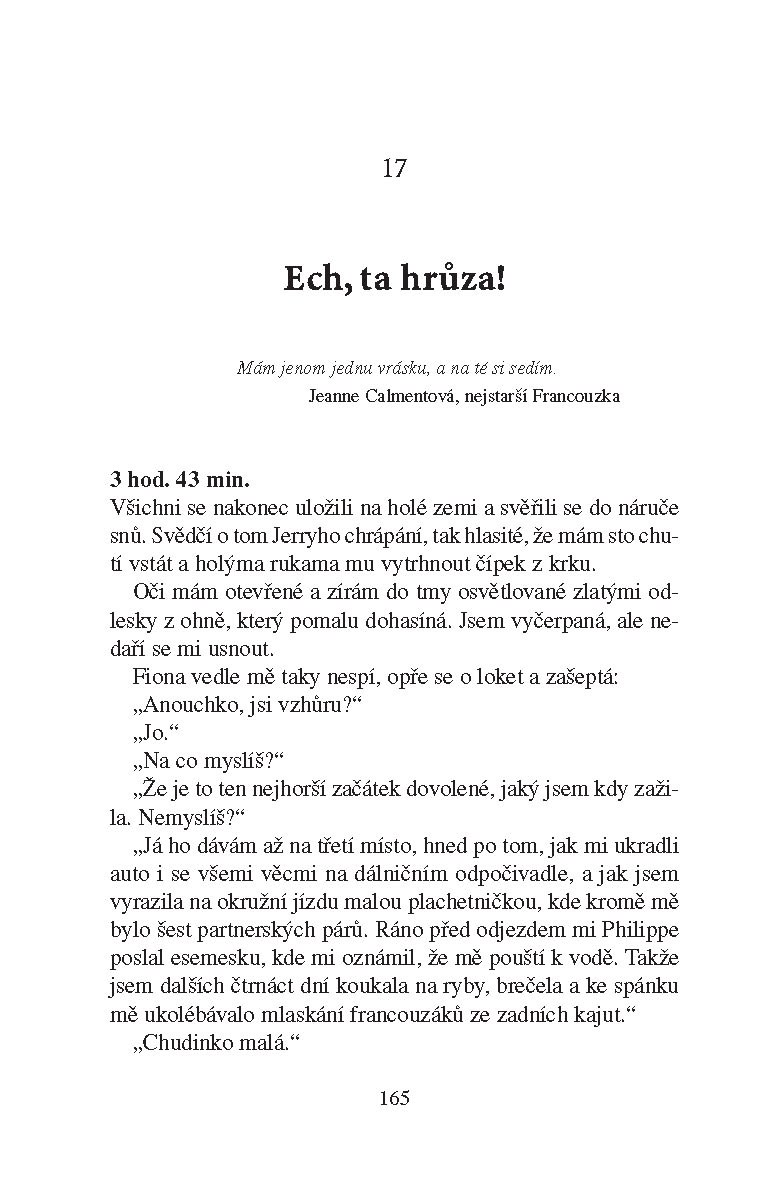 Anouschka byla až dosud se svým životem naprosto spokojená. Je vdaná, má dospívající dceru a zajímavé zaměstnání – píše knihy. Jednoho dne se však všechno změní, neboť: