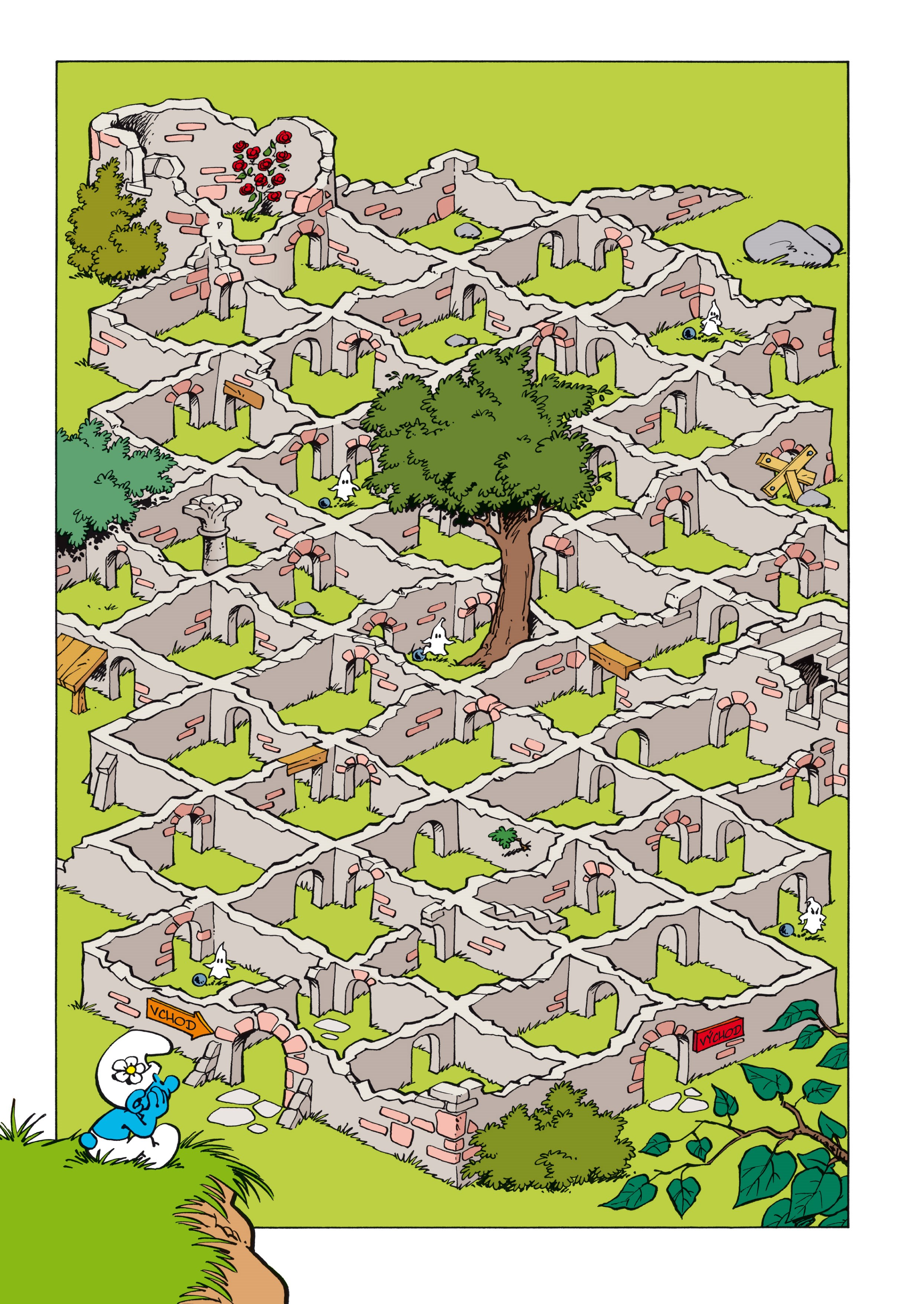 Šmoulí knížka plná labyrintů, bludišť, spletitých cestiček a veselých úkolů.