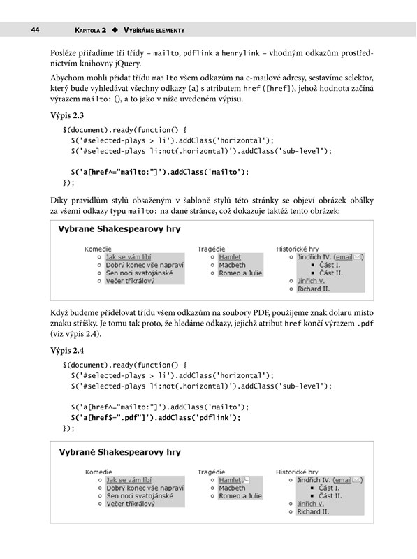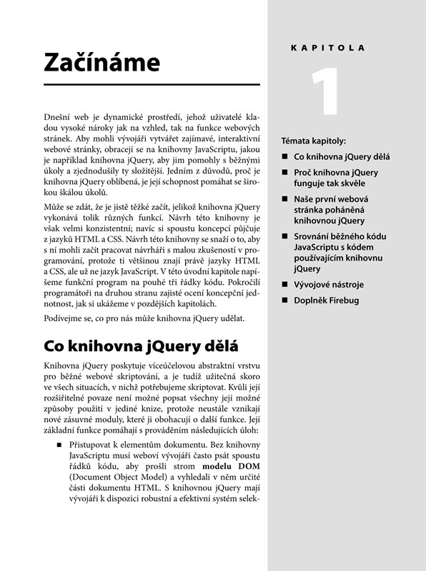 Dvojice zkušených autorů, která s webovými technologiemi pracuje každý den, vás provede možnostmi, které knihovna jQuery nabízí. Naučíte se pracovat s jednotlivými elementy stránky, obsluhovat události, vytvářet různé grafické efekty a animace. Při vylepšování stránek si vyzkoušíte i testování provedených úprav a ladění kódu. Nově nabyté znalosti si můžete procvičit na cvičeních, která najdete v závěru každé kapitoly. V jedné z příloh najdete i rychlou referenční příručku.