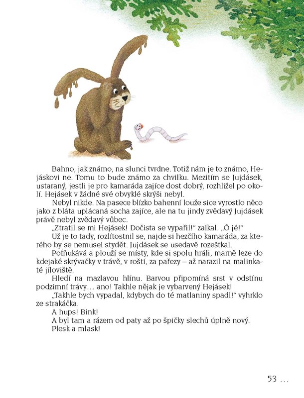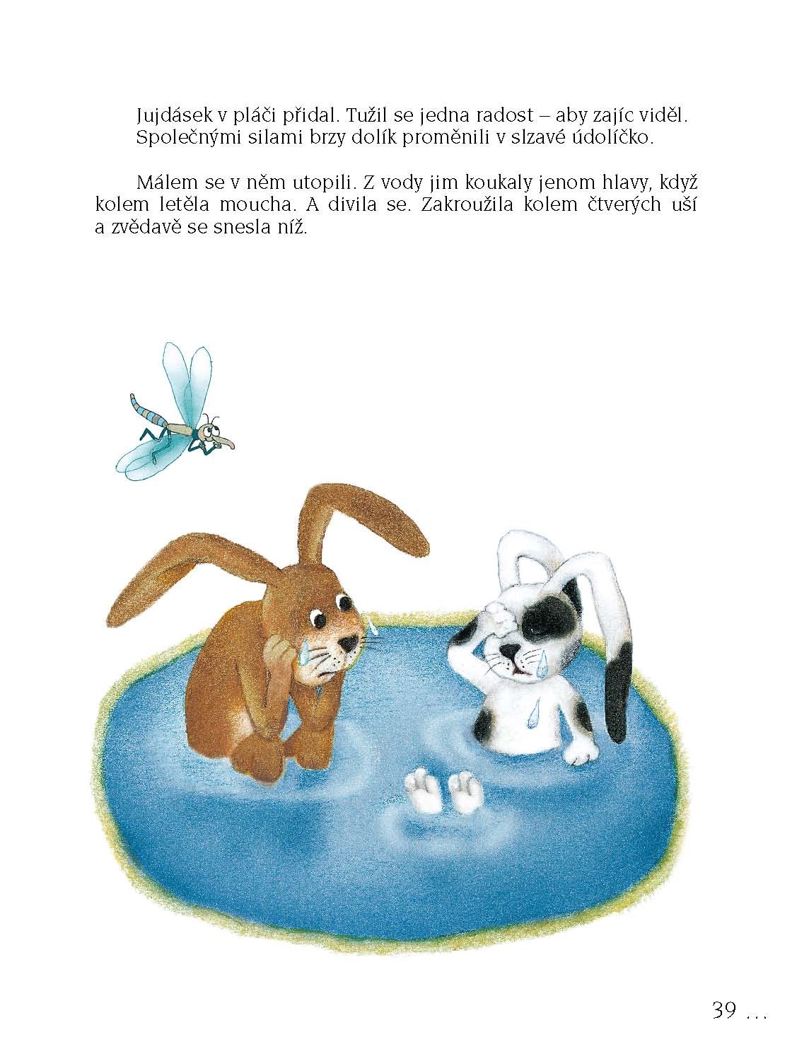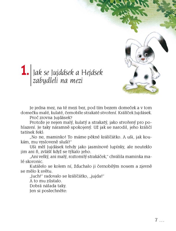 Je jedna mez, na té mezi bez a pod ním domeček králíčka Jujdáska. Na druhém konci meze je les a pod ním domeček zajíčka Hejáska. A vy už asi tušíte, čí jsou ta čtyři ouška! Správně, králíčka strakáčka a zajíčka v barvě podzimní trávy. O tom, jak se poznali a co všechno spolu prožili, si teď pěkně přečtěte v knížce o velkém kamarádství.