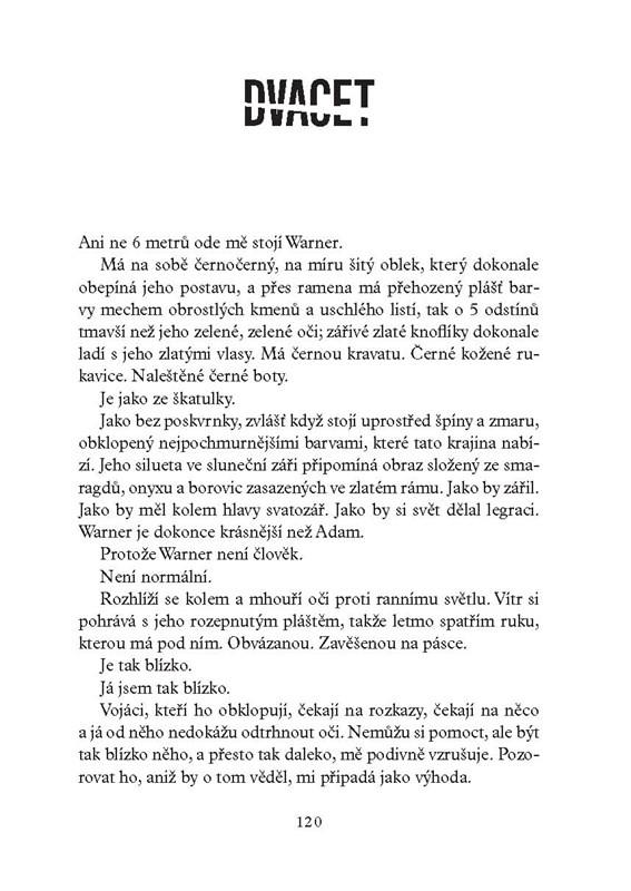 A ani Warnera, který po ní touží víc, než by bylo zdánlivě možné. V druhém díle této dystopické trilogie musí Juliette učinit několik životně důležitých rozhodnutí. Musí zjistit, co vlastně chce a o čem si myslí, že je to správné. A možná bude muset volit mezi srdcem a Adamovým životem.