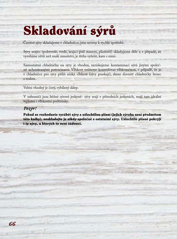 Podle této knihy se naučíte vyrábět mnoho druhů domácích sýrů. Nepotřebujete vlastní krávy, kozy ani ovce, nemusíte bydlet na statku. Stačí se jen řídit pokyny zkušené autorky, koupit mléko, sehnat si doporučované pomůcky a přísady a pečlivě dodržovat postupy. Vyrobíte si sýry jak s českou tradicí, tak i sýry zahraničního původu, zjistíte, jakých chyb se vyvarovat, dozvíte se, kam můžete v Evropě vyrazit na statky za sýrovou turistikou, a naleznete zde hodně zajímavých receptů, v nichž uplatníte své sýrové výrobky.