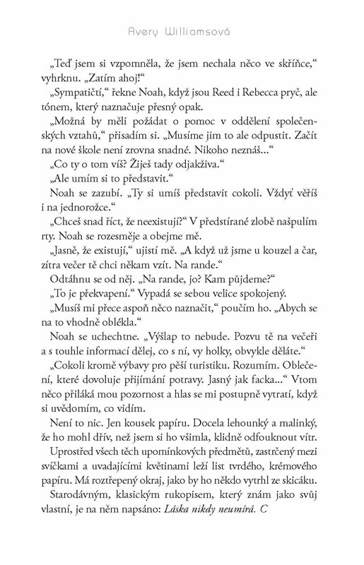 Serafina už prožila celá století. Ale teprve nedávno si začala připadat opravdu naživu. Konečně se rozhodla opustit svého přítele Cyruse a po letech a letech, kdy musela střídat těla kvůli zachování své nesmrtelnosti, se konečně usadila někde, kde je šťastná. Protože našla Noaha. Ale pak se stane něco velmi podezřelého a Serafina se začne obávat o své nové přátele. Rozhodne se Sera pro další, nové tělo – a jiný život – nebo najde způsob, jak si udržet navždy, co právě získala?