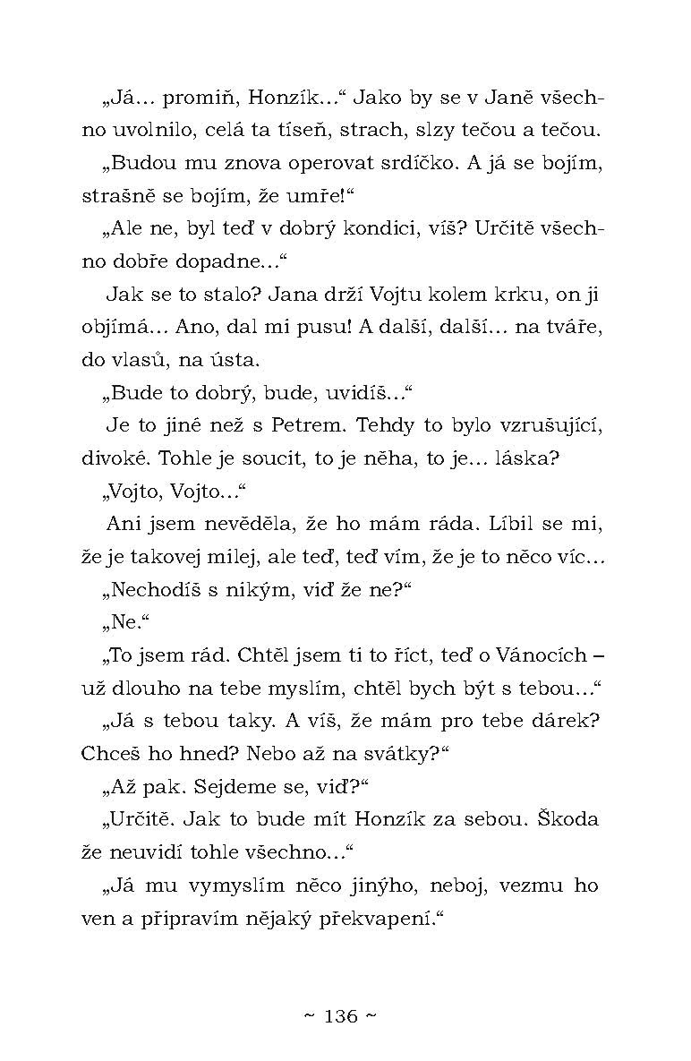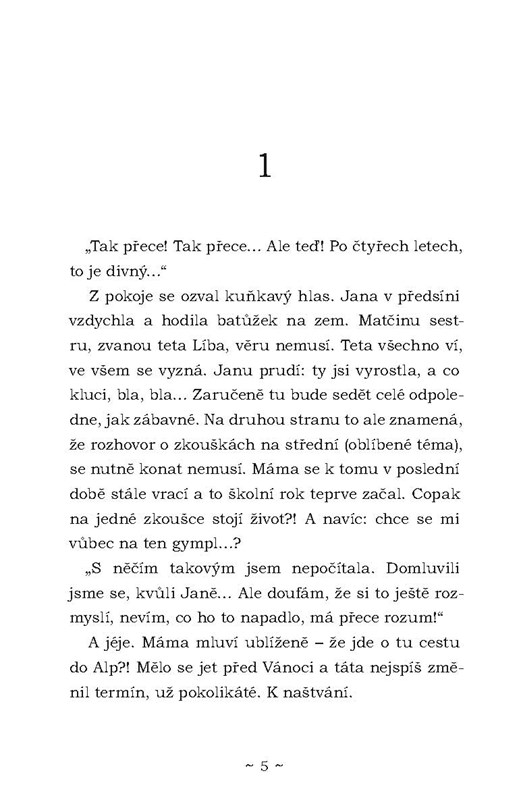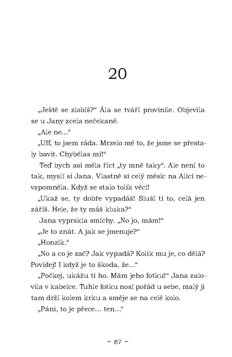 Janě je čtrnáct, rozhoduje se, co dál. Má jít na gympl, jak si přeje máma, nebo se jí tam vlastně nechce? S kluky je to těžké, Petr ze stájí je sice fajn, ale přece jenom o dost starší, toho nemůže zajímat. Jako by to nestačilo, rodičům to v poslední době moc neklape. Roztočí se kolotoč událostí a změn, které Janě sice leccos vezmou, ale taky jí do života přinesou někoho nového, kdo Janě přiroste k srdci víc, než by čekala.