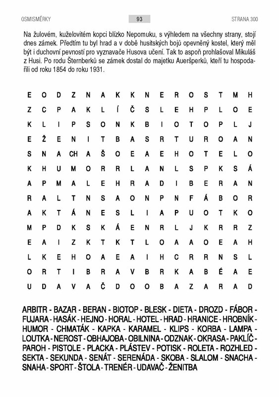 Zpříjemněte si chvíle pohody a odpočinku a zároveň zaměstnejte svůj mozek křížovkou nebo osmisměrkou. Čeká na vás 200 klasických křížovek, ve kterých rozluštíte citáty slavných osobností, a 100 osmisměrek, jež vám přestaví známé české a moravské hrady.