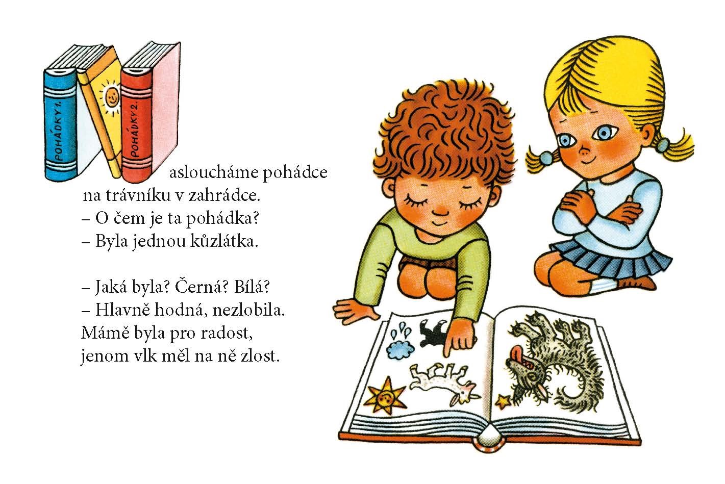 Veselé leporelo o tom, co děti rády dělají ve školce i v přírodě. Hrají si s míčem, s vláčky, stavějí kostky, modelují, kreslí obrázky a poslouchají pohádky. A když se unaví, jdou do Hajan a potom zase vyběhnou na zahrádku. Půvabné verše i obrázky pro kluky i holčičky.