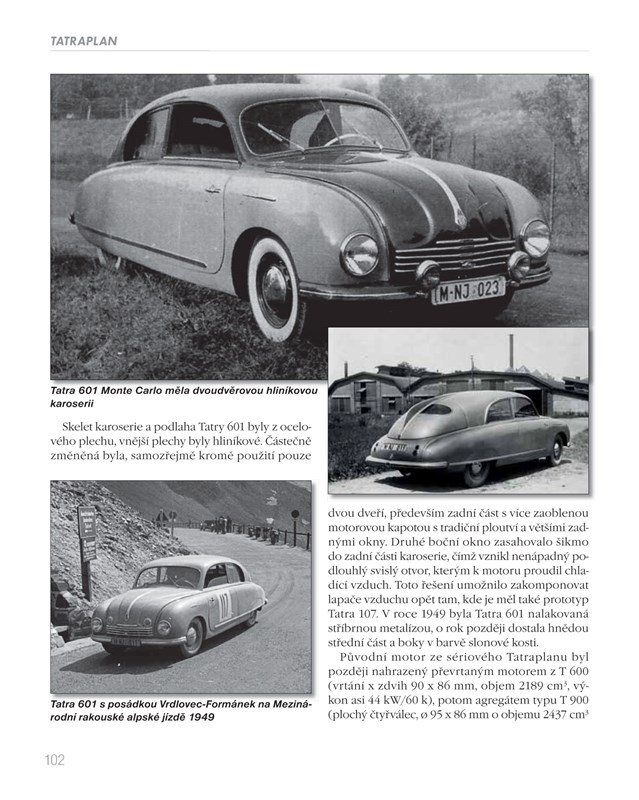 Kniha dokumentuje vývoj a historii aerodynamického vozu Tatraplan, vyráběného v letech 1947–1952 v kopřivnické firmě Tatra a po převedení výroby rovněž ve Škodě Mladá Boleslav. Obsahuje cenné dobové fotografie, archiválie, technické zajímavosti, podrobný popis konstrukčních změn i přehled designérů a konstruktérů, spjatých s vývojem tohoto vozu. Publikace popisuje i poměrně málo známé prototypy Ambrož, Josef, Tatraplan-Diesel, kabriolet Tatraplan od firmy Sodomka, závodní verzi T 602 Tatraplan-Sport a Tatra 601 Monte Carlo.