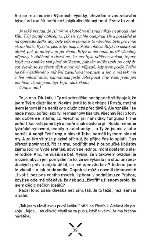 Sedmý a zároveň závěrečný díl literárních cestopisů pro mládež – Básník v báglu (K.H.Mácha), Blonďatá Kerolajn (K.Světlá), Báro, nebreč! (B. Němcová), Bojíš se, Margito? (M. Figuli), Blázniví donkichoti (M. de Cervantes), Blbnutí s Oscarem (O.Wilde) – sleduje osudy Fany, Nikol a Simči i většiny současných hrdinů, kteří se v předchozích dílech objevili. Strasti a slasti maturantů opět nenásilně prostupují osudy spisovatele, tentokrát Franze Kafky, autora, který je v zahraničí téměř synonymem Prahy, ale pro většinu českých teenagerů zůstal zatím neobjevený. Bleděmodrá kafkárna je vhledem do kafkovského světa, který je nám v mnohém až nebezpečně blízký. Odlehčenou stránku příběhu představuje soutěžní geocaching.