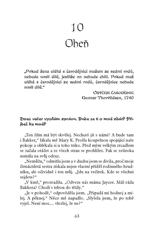Šestnáctiletá americká středoškolačka Morgan Rowlandsová si o sobě odjakživa myslí, že je naprosto obyčejná, nepříliš hezká dívka. Když se ale do města, kde žije, přestěhuje a na její školu nastoupí o rok starší Cal Blaire, který zrychluje tep nejen jí, ale taky všem jejím spolužačkám, zjistí něco, co jí od základů změní život. Je čarodějka a pochází z prastarého, mocného čarodějnického rodu – stejně jako Cal. A její moc je skutečně obrovská, tak obrovská, že se ji potřebuje naučit ovládat. A Cal se ochotně nabídne, že jí s tím pomůže. Jenže Cal se líbí i její nejlepší kamarádce Bree, navíc její rodina vůbec nemá radost z toho, co o sobě zjistila. Jak si s tím vším Morgan poradí? A bude Cal opětovat její city?
