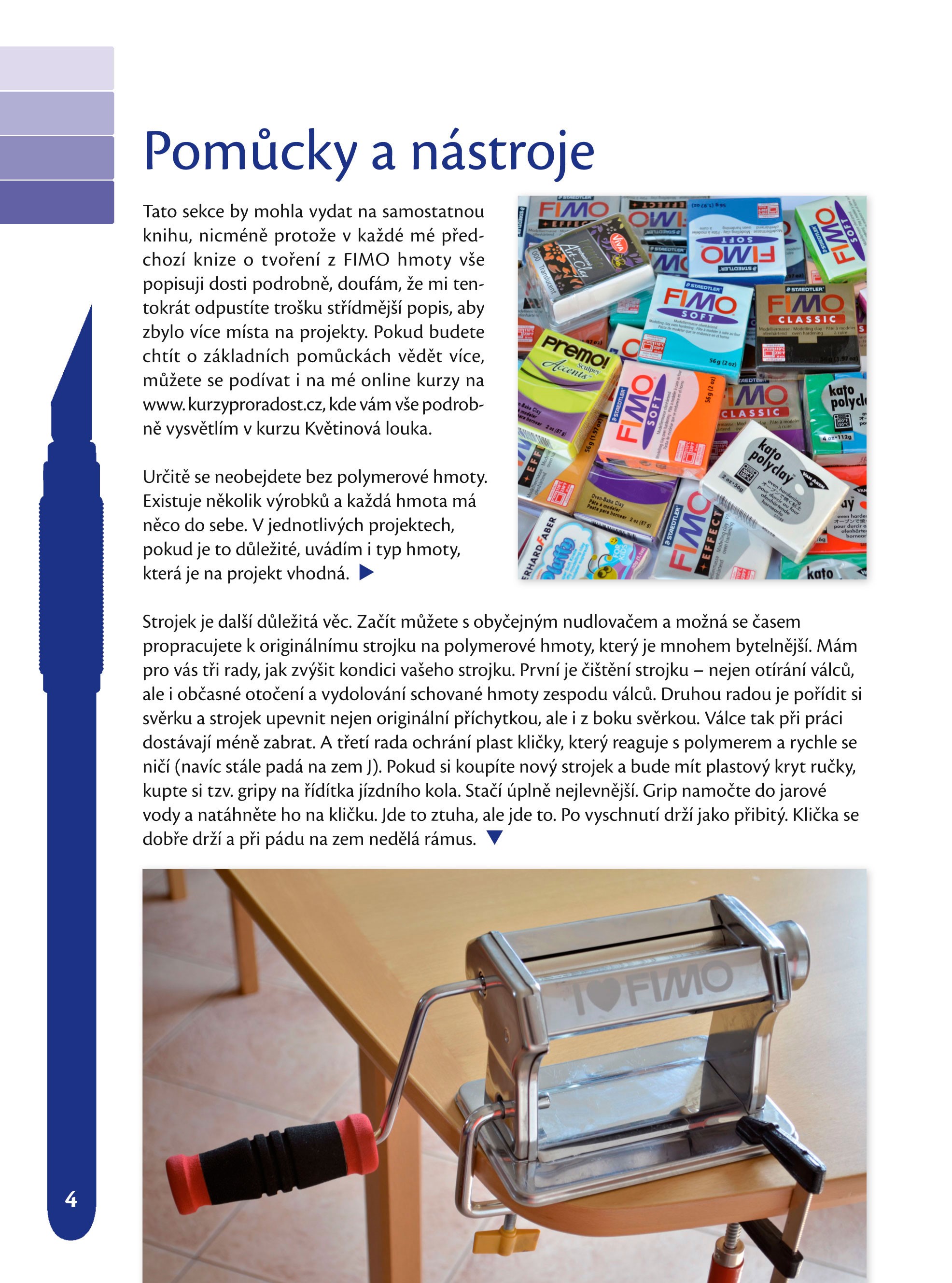 Pojďte si opět hrát a relaxovat s FIMO hmotou! Máme pro vás připraveny další techniky a postupy, nápadité výrobky a nepřeberné množství inspirace. Ve zbrusu nové knize Moniky Brýdové naleznete na dvě desítky nových projektů a už teď se můžete těšit na Ještěrčí vzor, kouzelný Hidden magic, patchworkové Bargello, Rybí lesk a mnohé další. Všechny postupy jsou opět srozumitelně vysvětleny krok za krokem a doprovázeny bohatou fotografickou přílohou, samozřejmě nechybí ani popis základních materiálů a pomůcek.