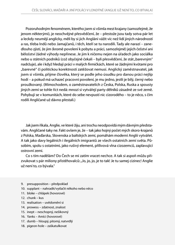 Humorné blogy v české i anglické verzi nám přibližují atmosféru rozličných londýnských zákoutí a čtvrtí i každodenní situace a reakce obyvatel, které v dnešním Londýně můžeme zažít. Bohatá výuková část studentům osvětlí zajímavosti anglického jazyka, upozorní na slova, ve kterých se často pletou a především naučí běžné hovorové výrazy, se kterými se v učebnicích jen tak nesetkají. Celý text je namluven na přiložené CD rodilými mluvčími.