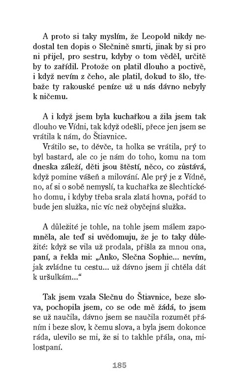 Třetí kniha Hany Lasicové vypráví příběh nemanželské Anny z Banské Šťiavnice, která odešla jako dvanáctiletá do Vídně, aby tam pracovala jako služka v jedné vysoce postavené rodině. Nezkušená dívka, vlastně ještě dítě, se musí vyrovnat nejen se spoustou povinností, těžkou otrockou prací bez volných dní či odpočinku, ale také se zájmem mladého pána. Sama ví, jaké to je být „bastard“, ale dokáže odolat naléhání mladého muže a touze svého srdce?