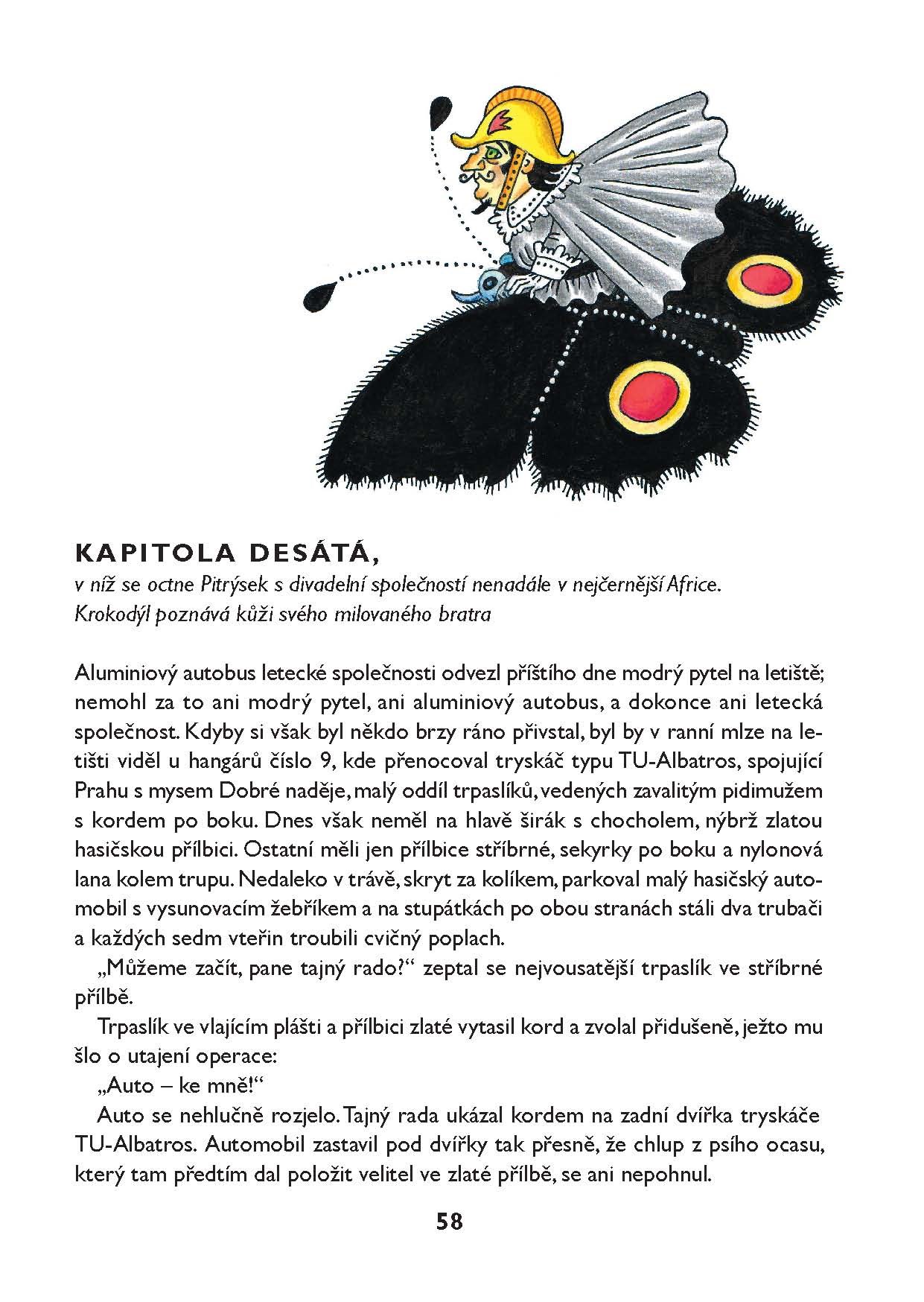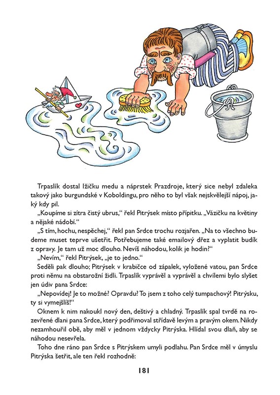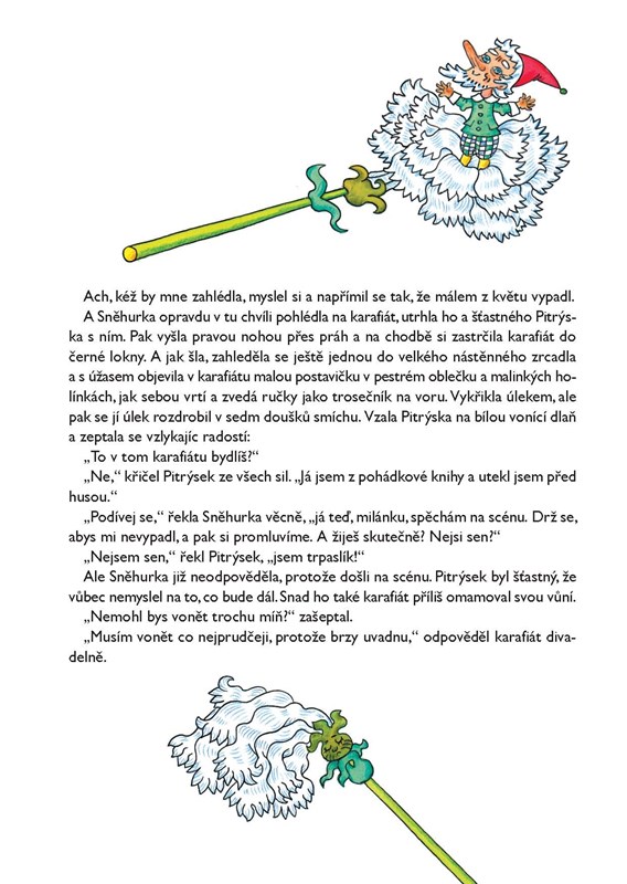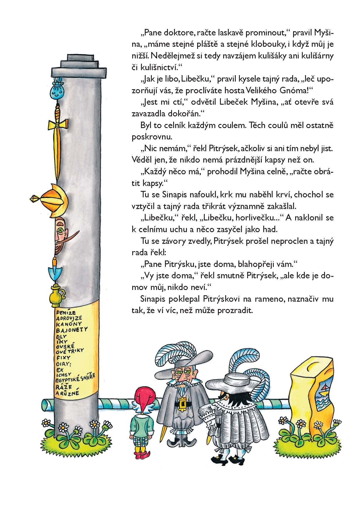 Knížka plná poezie, vtipu a dobrodružství vypráví o dlouhém putování trpaslíka Pitrýska, který se vydal do světa hledat spřízněnou duši. Spřátelil se s taxikářem Srdcem, stal se hercem v divadle pro děti, zamiloval se do princezny Pipiny, kraloval v africké říši Bambuti, byl čápem přenesený do Dánska a rozmlouval s pohádkářem Andersenem, prošel říší trpaslíků a nakonec zmizel po šťastném shledání s princeznou někde u Boubína. A jak to všechno začalo? Pitrýsek utekl z pohádkové knihy před zlou husou!