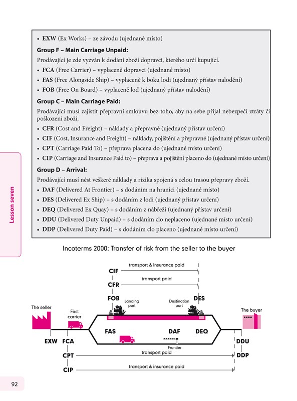 • poznámky ke gramatice a stylu jazyka používaného ve světě obchodu