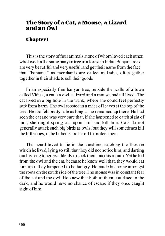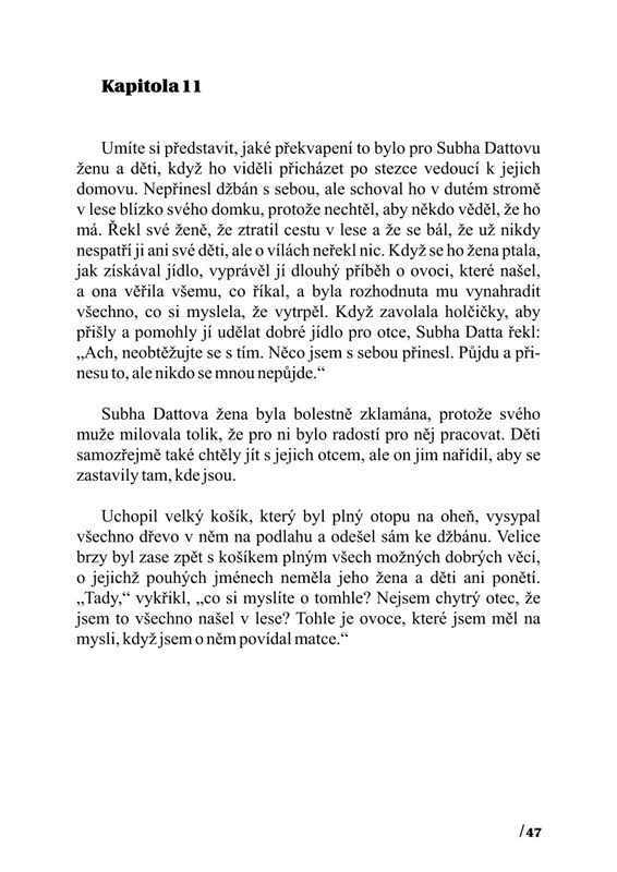 Dvě pohádky, které před téměř sty lety přeložil ze sanskrtu hinduistický psycholog a politik S. M. Mitra a pro anglické děti upravila Nancy Bellová. Indické děti tyto pohádky slýchají od svých rodičů nejen pro pobavení, ale hlavně pro poučení. Učí se zamýšlet se a odpovídat na otázky, které jsou součástí pohádek. Příběhy jsou vlastně takové učebnice, které mají za úkol cvičit paměť, koncentraci a ovládání vlastních emocí a myšlenek, a jsou v souladu s filozofií sebeuvědomění, která je základem hinduistické kultury a vychází z učení Véd.