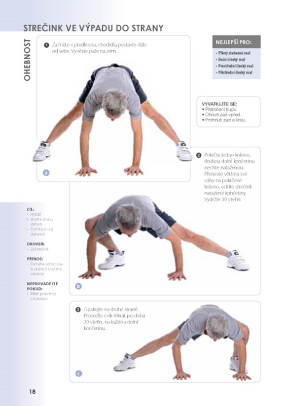 Sety cviků jsou zaměřeny na různé části těla a podle cíle, jehož chcete dosáhnout - na ohebnost a pružnost, zlepšení výdrže, zlepšení pohybového rozsahu, posílení středu těla a posilování. V kombinaci různých setů docílíte nejen zlepšení fyzické kondice, ale také fyzického vzhledu. U jednotlivých cviků naleznete také upozornění na kontraindikace, možné chyby, stupně obtížnosti, přínos a lehčí či těžší varianta daného cviku.