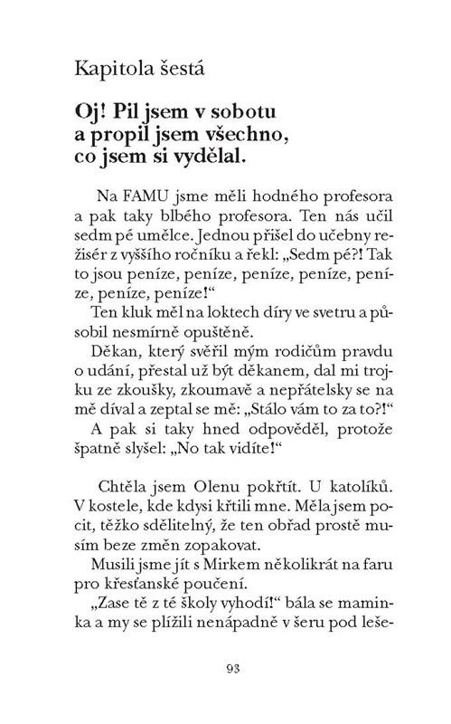 Novela známé autorky a scenáristky vypráví o problémech hlavní hrdinky Olgy, která touží po lásce, ráda flirtuje a bojí se, že z ní nic nebude. Vtipný příběh se stal předlohou pro stejnojmenný film, jehož scénář napsala sama autorka a který sklidil řadu prestižních ocenění.
