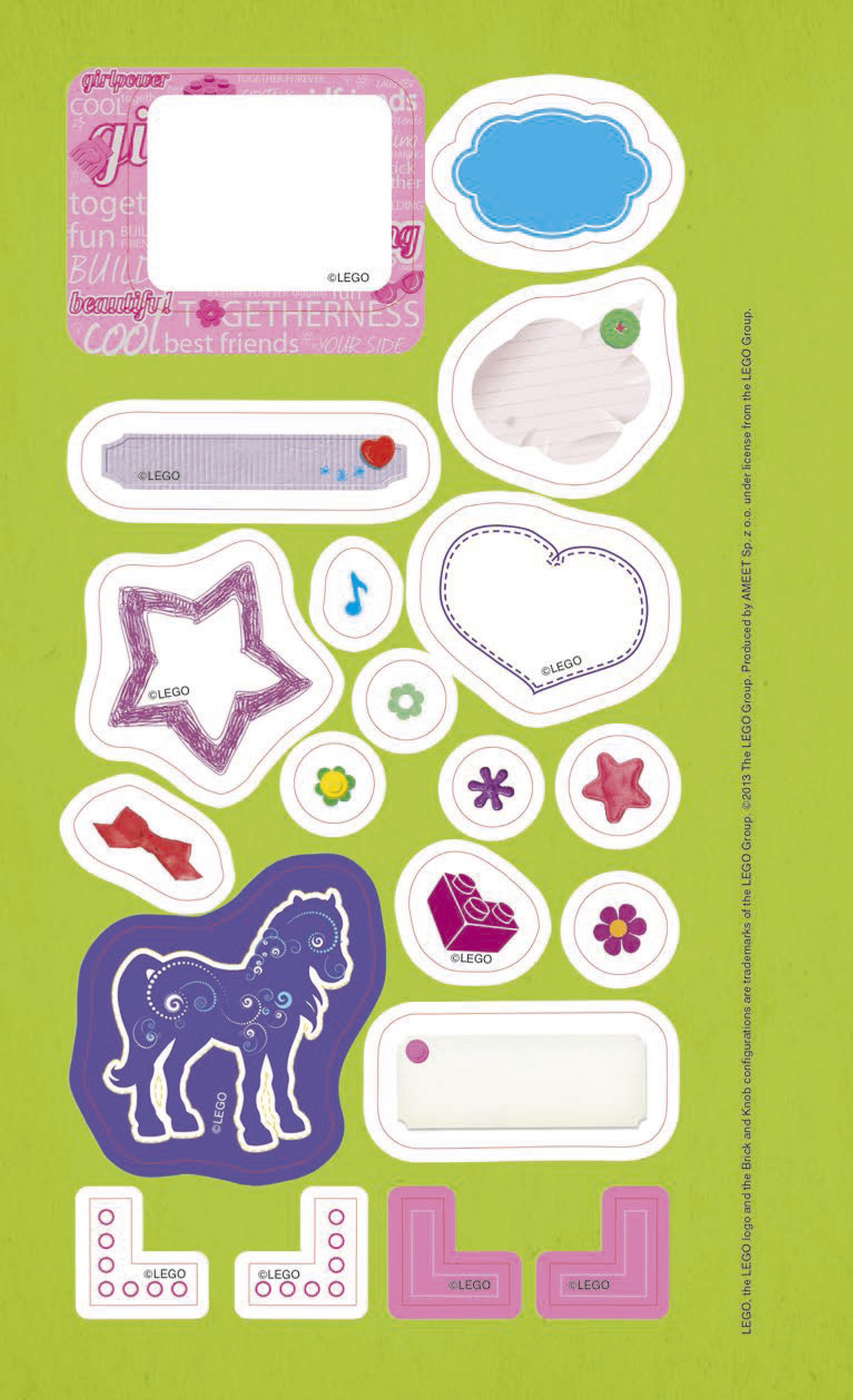 Uvnitř kabelky najdeš vše, co budeš k zachycení těch nejkrásnějších okamžiků s kamarádkami potřebovat: 80 samolepek a 130 dalších doplňků – šablony, dekorativní vzory, záložky a vylamovací obrázky a mnoho zajímavých a praktických tipů. S tím vším můžeš vytvářet úžasné kompozice nebo třeba módní ozdoby.