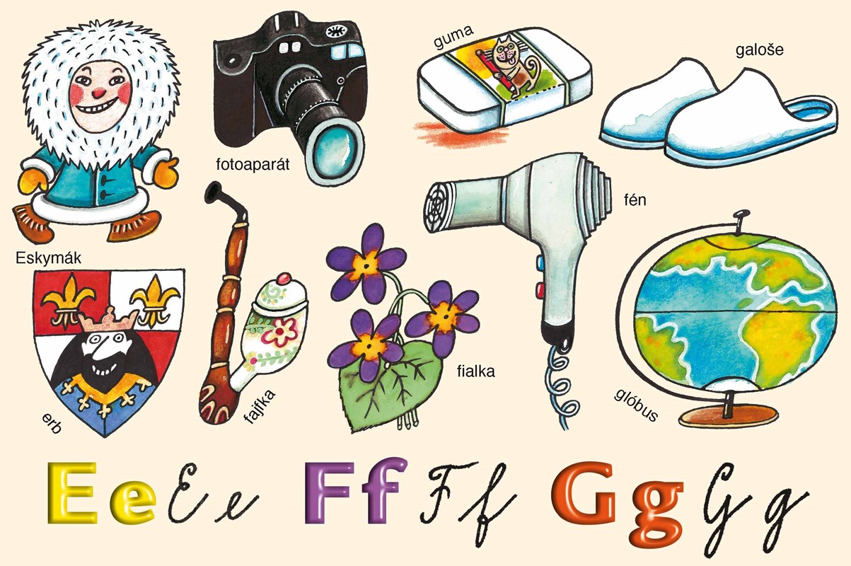Klasické leporelo plné jednoduchých barevných obrázků, které jsou však vybrány a seřazeny podle počátečního písmene od A do Ž – jako naše abeceda.