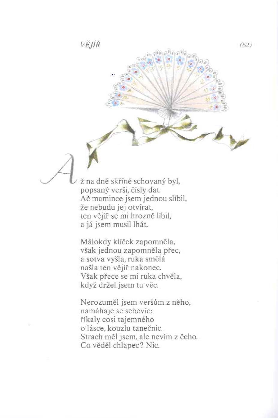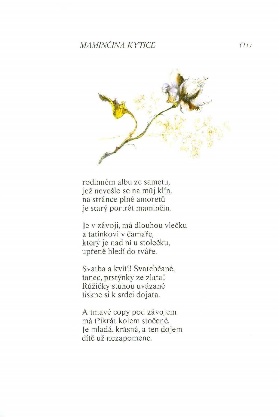 Nositel Nobelovy ceny za literaturu napsal svou sbírku zpěvné intimní lyriky už jako zralý, zkušený a známý básník v roce 1954. Půvabné vzpomínky na dětský svět a na maminku, která dokázala udělat domov krásným, oslovily nejednu generaci. Prosté a jednoduché verše (např. Maminčina kytice, Mlýnek na kávu, Všední den, Dědečkův pohřeb, Vějíř, Krabice na čaj, Domov... ) opěvují nejen dětství, ale především dobrotu, krásu, práci i únavu maminky a mluví ústy básníka za mnohé z nás. S ilustracemi Jiřího Trnky patří knížka do zlatého fondu české literatury a do pokladnice Albatrosu.
