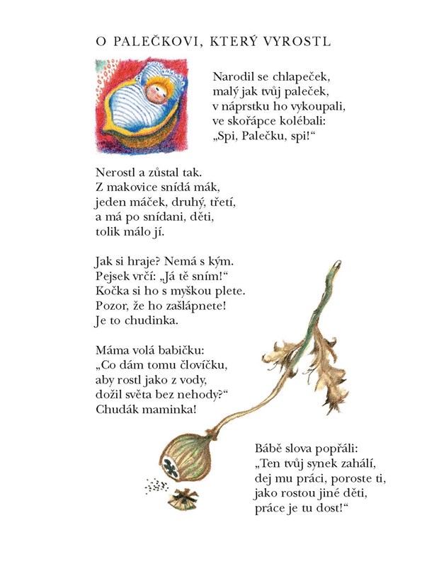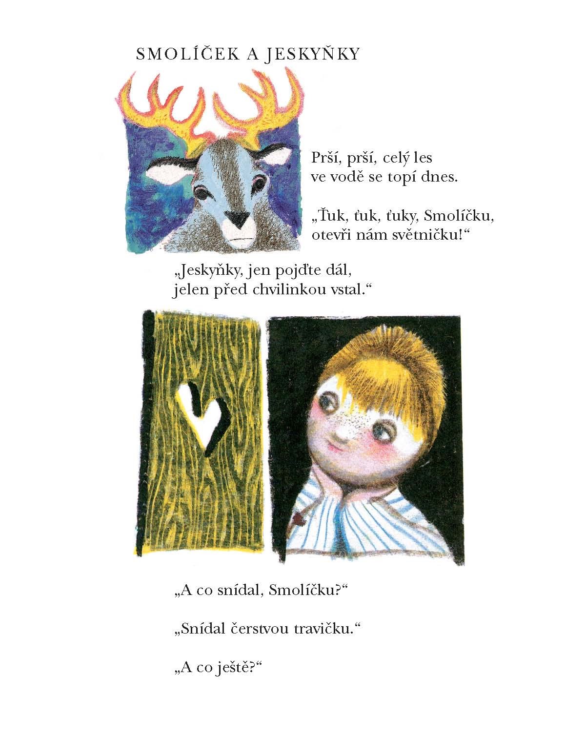 V hravých a dobře zapamatovatelných verších se děti skamarádí s Červenou karkulkou, Budulínkem, Otesánkem, Palečkem i Smolíčkem,
