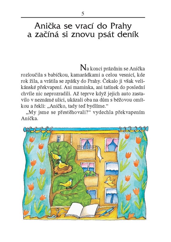Volné pokračování knížky Anička a její kamarádky. Začíná návratem Aničky do Prahy, kde ji čeká spousta překvapení, okouzlení i zklamání, radostí i strastí a otázek, na které hledá odpovědi ve svém deníku.