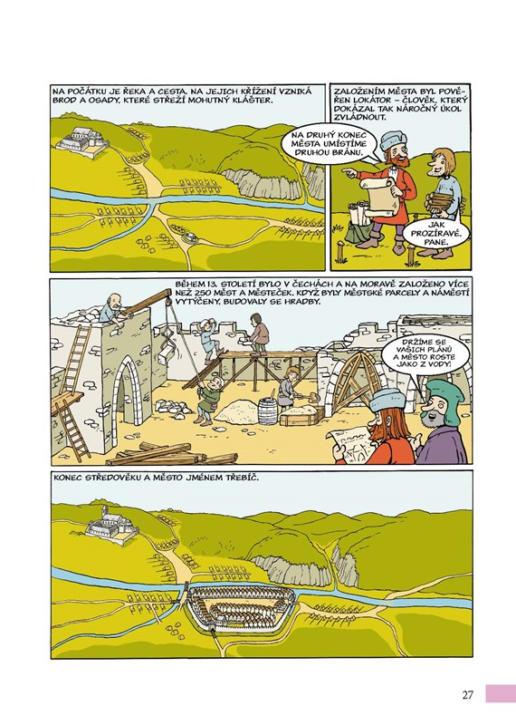 Kniha obsahuje celostránkové, velkoryse pojaté ilustrace Honzy Smolíka, které názorně představí opevnění, radnici nebo katedrálu, ale také pobaví vtipnými situacemi, detaily a komiksovými sekvencemi.