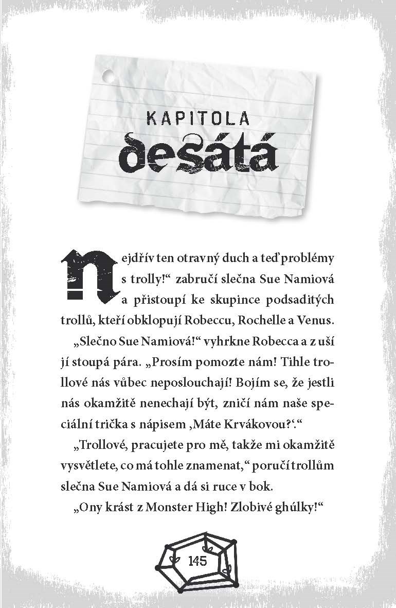 Odkud se berou všechny ty děsúžasné pavučiny? A kdo to potají přespává na půdě MONSTER HIGH? Tři odvážné ghúlmošky, které znáte už z předchozích dvou knih, Robecca Steamová, Venus McFlytrapová a Rochelle Goylová, se snaží na tyto otázky najít odpověď, a navíc také usilovně pátrají po únosci ředitelky Krvákové. A v průběhu pátrání se čím dál víc utvrzují v přesvědčení, že nebezpečí, které hrozí nejenom Monster High, ale celému světu příšer vůbec, má kořeny v dávné minulosti…