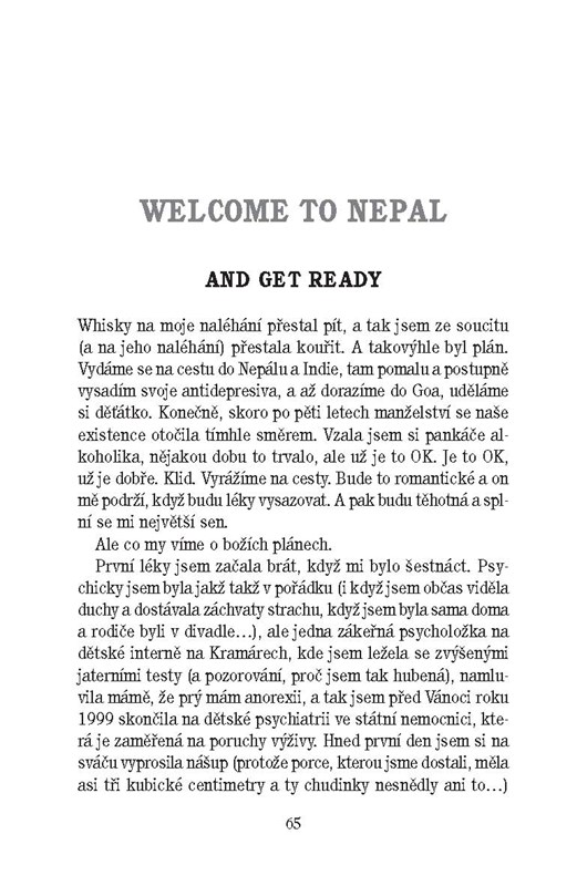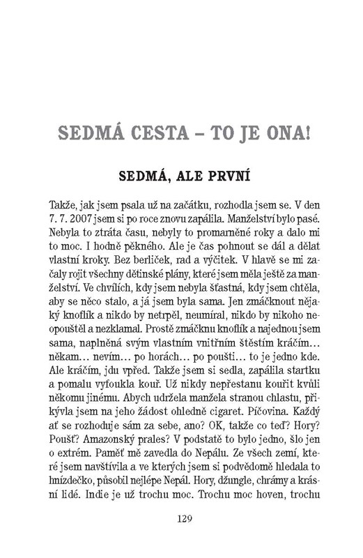 Kniha vznikala na poušti i na ledovcích, na pláži i v chatrčích a autorka v ní s vražednou upřímností vypráví o sobě i o své vášni. Cosi v jejím nitru ji žene z jedné země do druhé, nutí ji okusit extrémní podmínky v himálajském podhůří či zdolávat jen se šerpou nejtěžší trasy v okolí. Najde si však čas i na pomoc dětem v místním sirotčinci. Svou osobní zpověď zachytila kontroverzní slovenská herečka a zpěvačka, dcera Anny Šiškové, nejen v knize, ale i ve filmovém dokumentu režisérky Venduly Bradáčové Fulmaya, děvčátko s tenkýma nohama.
