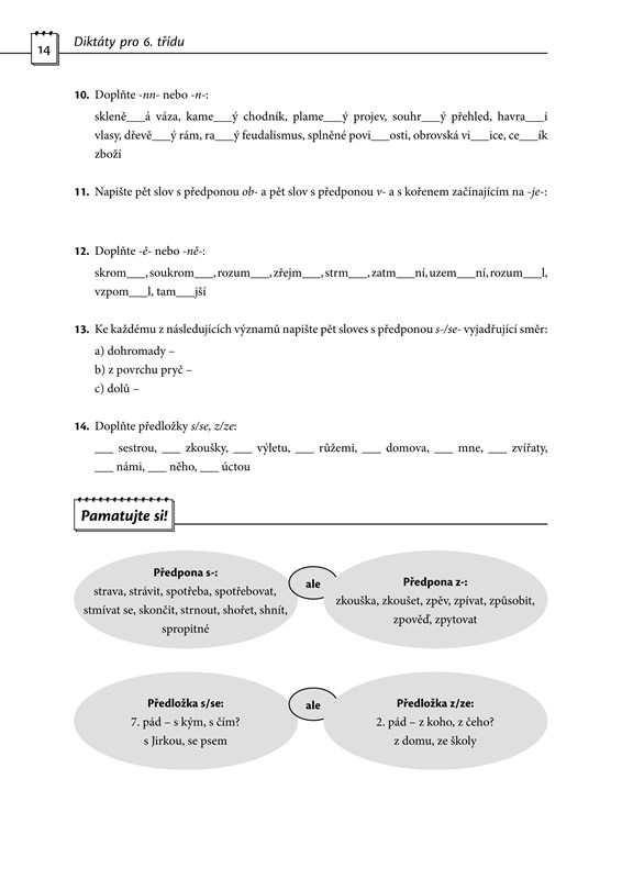 Diktáty a testy pro 6. třídu jsou určeny pro ty, kdo si chtějí zopakovat nebo zlepšit své znalosti z učiva českého jazyka 6. ročníku ZŠ nebo 1. ročníku osmiletých gymnázií. Dají se využít jak pro domácí přípravu, tak pro práci ve vyučování. Mohou tedy pomoci nejen samotným žákům, ale na druhou stranu usnadní práci učitelům a rodičům.