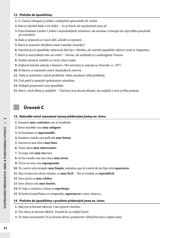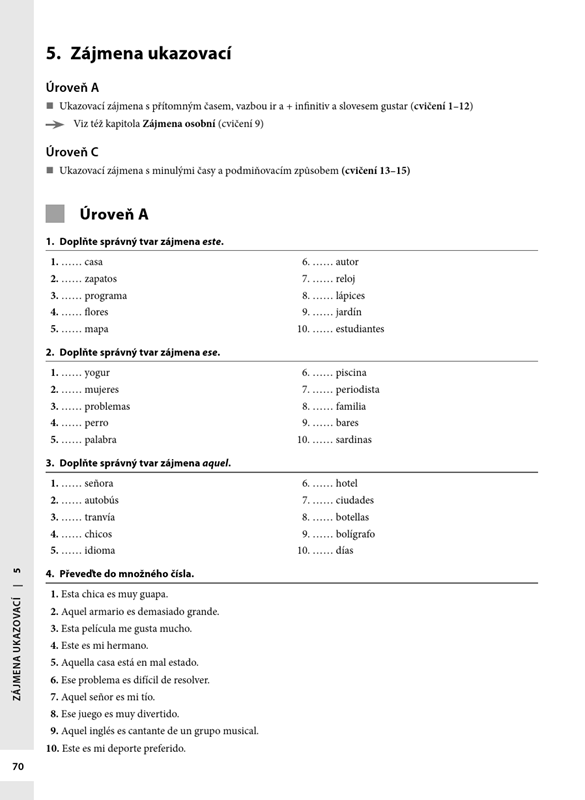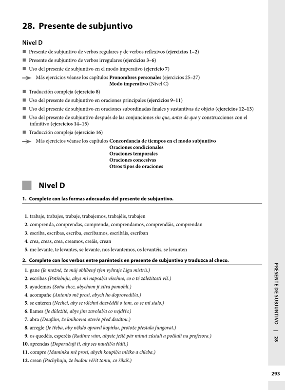 Publikace je určena studentům španělštiny, kteří si chtějí procvičit teoretické znalosti jazyka. Cvičebnice je rozdělena podle slovních druhů, nejvíce prostoru je věnováno slovesu a slovesným tvarům. Kapitoly se dále člení podle úrovně obtížnosti, a to jak podle obtížnosti jevu, tak podle slovesných tvarů, které daný jev provázejí. Poslední kapitola se soustředí na procvičení specifických jevů, které bývají pro Čechy problematické.